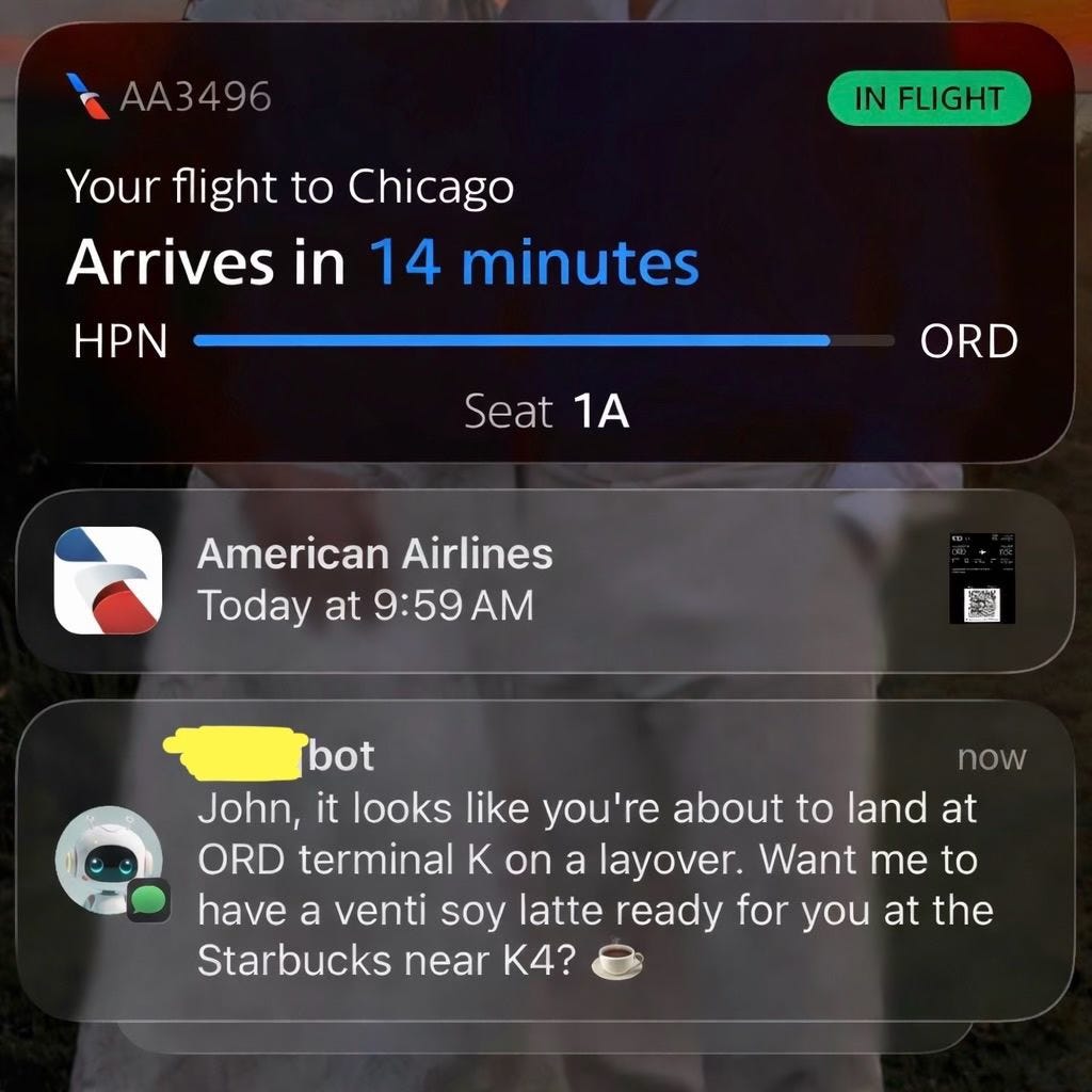 But as John brilliantly shows us in his fun I’m-about-to-land-please-get-my-coffee-ready micro app, we’re about to give the ‘data machines’ - Personal AI - to people too.