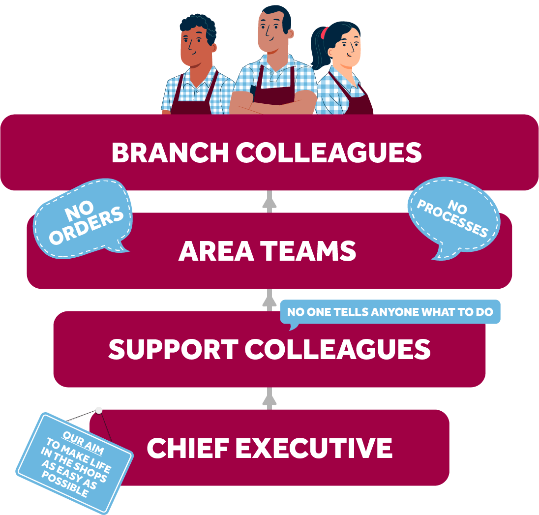 Front line staff are at the top of the business. Because they are the business. It’s a huge ‘V-shaped’ organisation.